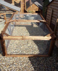 Enclosed living area at one end, with wooden door and also one wire door to gain access to run.